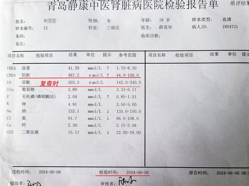 在青島未透析降下肌酐,尿毒癥患